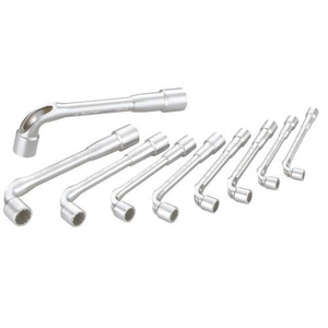 Set van 9 doorsteekpijpsleutels 6X12-kant in mm. Opening rechte kant 6-kant Opening gebogen kant 12-kant. Ponsen ‘Surface drive'. Om hoge koppels te kunnen toepassen. Gepolijste, glanzende afwerking.
