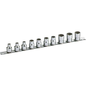 De dop wordt op de accessoires 3/8'' geklikt met behulp van een kogel. Lost alle gangbare aanspanningsproblemen op. Gesmeed in staal met chroom-vanadium. Gechromeerde, gepolijste uitvoering. Dankzij de opbergracks voor doppen gaan er geen doppen verloren, kunnen de doppen gemakkelijker en sneller worden teruggevonden waardoor de productiviteit toeneemt. Bij werken in het atelier kunnen de racks worden geïntegreerd in gereedschapswagens, karren, koffers, of ook worden bevestigd op een plaat. Bij transport passen de racks perfect in een voertuig of in een gereedschapskist. Gewicht 375 g