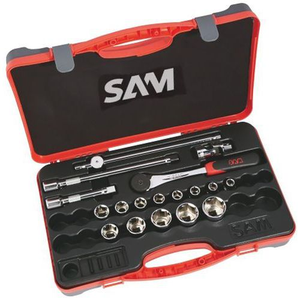 Ratel en doppen 6 kant 1/2 met 18 delig in mm - SAM Outillage