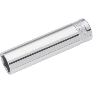 Dop 3/8'' lang 6-kant - 28 mm. Gesmeed in staal met chroom-vanadium. Profiel Surface Drive SAM. Ondersteuning van de dop op de accessoires 3/8 inch met kogel Gechromeerde uitvoering, gepolijst en glanzend.