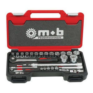 Met Premium ratel Snel vergrendelen en ontgrendelen van doppen door drukknop De doppen of accessoires komen niet los van de ratel Vlot werken op moeilijk bereikbare plaatsen De ratelkoppen nemen weinig plaats in voor een maximale toegankelijkheid 1/4“ 10 doppen zeskant : 4-5-6-7-8-9-10-11-12-13 mm 1 ronde ratel Premium 1 cardangewricht 1 verlengstuk 50 mm 1 verlengstuk 140 mm clik’n hold 1/2“ 15 doppen zeskant : 10-11-12-13-14-16-17-18-19-21-22-24-27-30-32 mm 1 ronde ratel Premium 1 cardangewricht 1 verlengstuk 125 mm 1 verlengstuk 280 mm clik’n hold