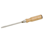 Doorlopende kling maakt het mogelijk om met een geleide slag op het uiteinde van de schroevendraaier te slaan zonder deze te beschadigen Warmtebehandeling van het blad voor een langere levensduur Hardhouten handvat type beuken Lederen ring om de slag te dempen dmv stalen ring geborgde kling Met aandrijfzeskant