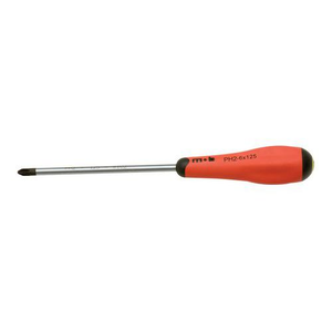 Tournevis type Phillips. manche bi-matière pour plus de confort et un maximum de résistance. couple très puissant grâce aux 6 reliefs du manche. acier au chrome vanadium.