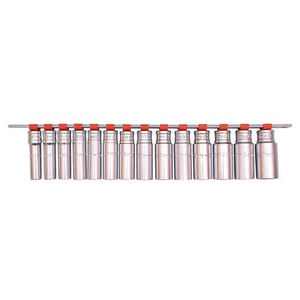 Doppenrail lange doppen 1/2'' 14-delig, Aantal stuks: 14, Type nr.: 9430070001, Maat (Afmetingen): 12-13-14-15-16-17-18-19-20-21-22-23-24-27 mm, Aantal kanten: 12