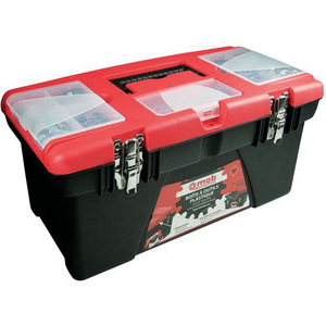 Gereedschapsbox kunststof Basis, Afsluitbaar met hangslot: ja, Totale hoogte: 190 mm, Totale breedte: 210 mm, Totale lengte: 415 mm, Gewicht: 1115 g, Aantal vakken: 4, Type nr.: 9506000201, Materiaal: Kunststof, Soort opbergmeubel: Gereedschapskoffer