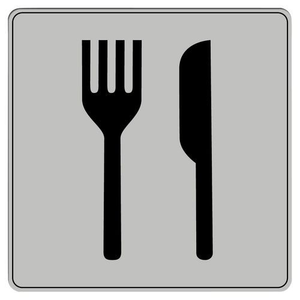 Pictogram van polystyreen ISO 7001, Materiaal: Plexiglas, Hoogte: 9 cm, Paneel vorm: Vierkant, Breedte: 9 cm, Kleur: Grijs, Opdruk: Restaurant, Bevestiging: Zelfklevend, Special Covid-19: nee, Recyclebare verpakking: Ja - 100%, Recyclebaar product: Ja - 100%