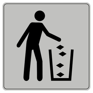 Pictogram van polystyreen ISO 7001, Materiaal: Plexiglas, Hoogte: 9 cm, Paneel vorm: Vierkant, Breedte: 9 cm, Kleur: Grijs, Opdruk: Prullenbak, Bevestiging: Zelfklevend, Special Covid-19: nee, Recyclebare verpakking: Ja - 100%, Recyclebaar product: Ja - 100%