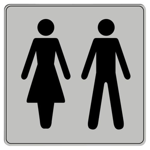 Pictogram van polystyreen ISO 7001, Materiaal: Polystyreen, Hoogte: 20 cm, Paneel vorm: Vierkant, Breedte: 20 cm, Kleur: Grijs, Opdruk: Heren-/damestoilet, Bevestiging: Zelfklevend, Special Covid-19: nee, Recyclebare verpakking: Ja - 100%, Recyclebaar product: Ja - 100%