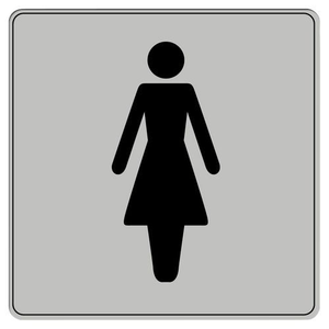 Pictogram van polystyreen ISO 7001, Materiaal: Polystyreen, Hoogte: 20 cm, Paneel vorm: Vierkant, Breedte: 20 cm, Kleur: Grijs, Opdruk: Damestoilet, Bevestiging: Zelfklevend, Special Covid-19: nee, Recyclebare verpakking: Ja - 100%, Recyclebaar product: Ja - 100%