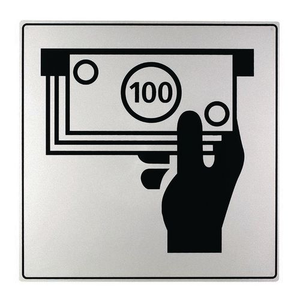 Pictogram van polystyreen ISO 7001, Materiaal: Polystyreen, Hoogte: 20 cm, Paneel vorm: Vierkant, Breedte: 20 cm, Kleur: Grijs, Opdruk: Pinautomaat, Bevestiging: Zelfklevend, Special Covid-19: nee, Recyclebare verpakking: Ja - 100%, Recyclebaar product: Ja - 100%