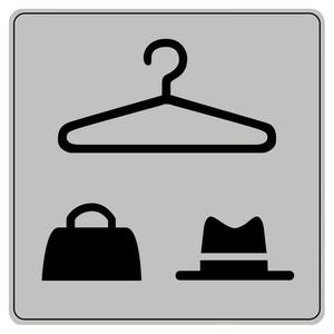 Pictogram van polystyreen ISO 7001, Materiaal: Polystyreen, Hoogte: 20 cm, Paneel vorm: Vierkant, Breedte: 20 cm, Kleur: Grijs, Opdruk: Garderobe, Bevestiging: Zelfklevend, Special Covid-19: nee, Recyclebare verpakking: Ja - 100%, Recyclebaar product: Ja - 100%