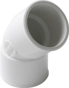 Nicoll fitting met 2 aansluitingen, bocht, uitwendige buisdiameter aansluiting 32mm, aansluiting 1 polyvinylchloride (PVC), uitwendige buisdiameter aansluiting 32mm, aansluiting 1 lijmmof, aansluiting 2 lijmmof, bochthoek 45°, aansluiting 2 polyvinylchloride (PVC)