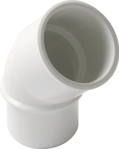 Nicoll fitting met 2 aansluitingen, bocht, uitwendige buisdiameter aansluiting 40mm, aansluiting 1 polyvinylchloride (PVC), uitwendige buisdiameter aansluiting 40mm, aansluiting 1 lijmmof, aansluiting 2 lijmeind, bochthoek 45°, aansluiting 2 polyvinylchloride (PVC)