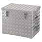 Transportkoffer aluminium met diamant plaat textuur, Totale inhoud: 120 L, Totale hoogte: 520 mm, Totale breedte: 425 mm, Totale lengte: 622 mm, Model: 2 sluitingen, 2 handgrepen aan de zijkant, Kleur: Zilver/verzinkt, Materiaal: Aluminium, Gewicht: 11.78 kg, Gebruik: Transporteren Bouwterrein Opslaan