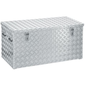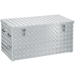 Transportkoffer aluminium met diamant plaat textuur, Totale inhoud: 250 L, Totale hoogte: 520 mm, Totale breedte: 525 mm, Totale lengte: 1022 mm, Model: 2 sluitingen, 4 handgrepen aan de zijkant, Kleur: Zilver/verzinkt, Materiaal: Aluminium, Gewicht: 19.34 kg, Gebruik: Transporteren Bouwterrein Opslaan