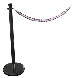 Paal met driekleurig touw, Gebruiksomgeving: Binnen, Kleur: Zwart, Totale diameter paal: 50 mm, Sokkel Ø: 330 mm, Gewicht: 10.3 kg, Materiaal: Staal, Totale hoogte: 1000 mm, Type paal: Met koord, Special Covid-19: nee