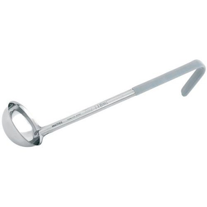 Rvs opscheplepel met steel van gekleurd PVC.