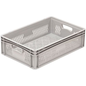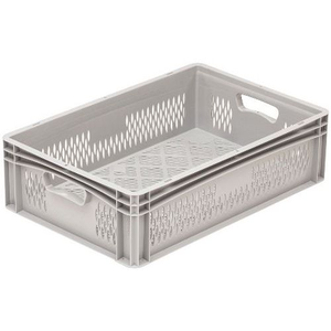 Stapelbaar open bak grijs type Europa, Totale inhoud: 41.7 L, Totale hoogte: 220 mm, Totale breedte: 400 mm, Totale lengte: 600 mm, Bak kleur: Grijs, Type bodem: Geperforeerd, Type zijkant: Geperforeerd, Materiaal: Polypropyleen, Recyclebare verpakking: Ja - 100%, Recyclebaar product: Ja - 100%