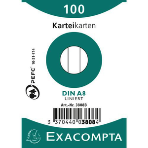 Steekkaart bristol 100 vel folie lijn 55x74mm Exacompta, Gramsgewicht: 205 g/m², Aantal vellen/riem: 100, Liniëring: Kleine ruit (5 x 5), Lengte: 74 mm, Kleur: Wit, Eco-verantwoordelijke aanpak: ja, PEFC licentie: 10-31-714