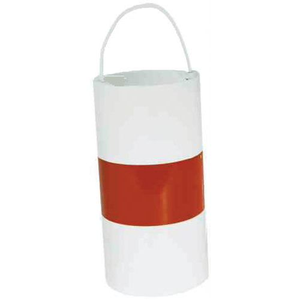 Cilindrische behuizing van wit polypropyleen.Horizontale rode reflecterende band.Bevestigd met geweven nylondraad.