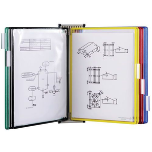 Wandsysteem metaal Tarifold A4 10 zichtpanelen - assorti. Wandgemonteerd metalen documentpresentatiesysteem met zijstoppers en 10 A4 PP-draaivakken. Beschermt en organiseert al uw veelgebruikte documenten. Geeft directe toegang tot al uw belangrijke informatie. Voor gebruik in fabrieken, supermarkten, magazijnen, kantoren, restaurants, winkels, etc.