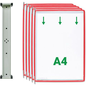 Wandsysteem magnetisch Tarifold A4, 5 zichtpanelen. Hij kan bijna overal worden gemonteerd, zonder gereedschap. De magnetische muurbeugel kan in een oogwenk aan alle metalen oppervlakken worden bevestigd. Metalen wandgemonteerd documentpresentatiesysteem met zijstoppen en 10 A4 draaizakken. Krachtige magnetische strips op de achterkant