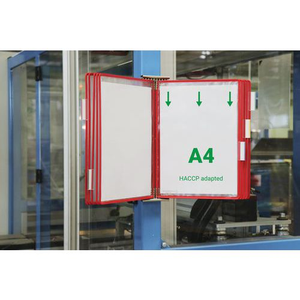 Wandsysteem Tarifold rvs A4, 10 zichtpanelen zijkant. Drie redenen om een RVS wanddocumentpresentatiesysteem te gebruiken: onberispelijke hygiëne, een vrij werkblad, beschermde en afwasbare documenten. Goed effectief!Menu's, recepten, instructies, technische informatie...uw documenten zijn toegankelijk en beschermd in deze vochtbestendige zakken. Speciaal ontworpen voor omgevingen die onderworpen zijn aan HACCP-hygiënenormen (keukens, restaurants, slaapkamers koud…). Roestvrijstalen metalen elementen om roestvorming te voorkomen