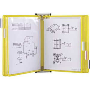 Wandsysteem metaal Tarifold A3, 10 zichtpanelen zijopening, Lean Management: ja, Kleur: Grijs, Breedte: 670 mm, Hoogte: 46 cm, Diepte: 150 mm, Aantal hoesjes: 10, Showtas kleur: Geel, Showtas materiaal: PVC, Voor formaat: 297 x 420 mm (A3), Gewicht: 1.19 kg