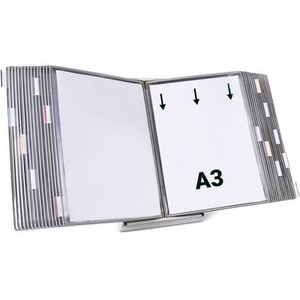 Zichtpanelensysteem wand metaal Tarifold A3 30 zichtpanelen. Metalen lessenaarpresentatiesysteem met zijstoppers en 30 draaibare A4-vakken. Beschermt en organiseert al uw veelgebruikte documenten. Geeft directe toegang tot al uw belangrijke informatie. De ideale Lean-managementtool om informatie helpen structureren