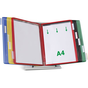 Zichtpanelensysteem bureau metaal Tarifold A4 20 zichtpanelen PP. Metalen lessenaarpresentatiesysteem met zijstoppers en 20 draaivakken van A4 PP. Beschermt en ordent al uw veelgebruikte documenten. Geeft onmiddellijke toegang tot al uw belangrijke informatie. L Het ideale Lean-management hulpmiddel om informatie te helpen structureren