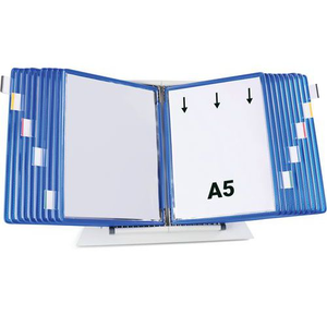 Zichtpanelensysteem wand metaal Tarifold A5 20 zichtpanelen. Metalen lessenaarpresentatiesysteem met zijstoppers en 20 draaibare A5-vakken. Beschermt en organiseert al uw veelgebruikte documenten. Geeft directe toegang tot al uw belangrijke informatie. De ideale Lean-managementtool om informatie helpen structureren