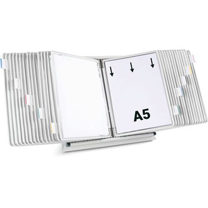 Zichtpanelensysteem wand metaal Tarifold A5 30 zichtpanelen. Metalen lessenaarpresentatiesysteem met zijstoppers en 30 draaibare A5-vakken. Beschermt en ordent al uw veelgebruikte documenten. Geeft directe toegang tot al uw belangrijke informatie. De ideale Lean-managementtool om informatie helpen structureren