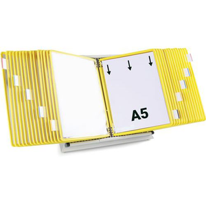 Zichtpanelensysteem wand metaal Tarifold A5 30 zichtpanelen. Metalen lessenaarpresentatiesysteem met zijstoppers en 30 draaibare A5-vakken. Beschermt en ordent al uw veelgebruikte documenten. Geeft directe toegang tot al uw belangrijke informatie. De ideale Lean-managementtool om informatie helpen structureren