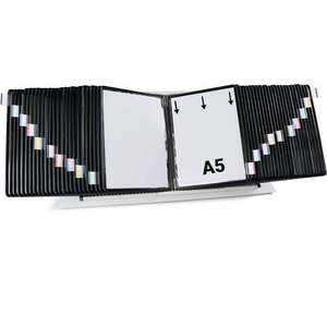 Zichtpanelensysteem wand metaal Tarifold A5 50 zichtpanelen. Metalen lessenaarpresentatiesysteem met zijstoppers en 50 draaibare A5-vakken. Beschermt en ordent al uw veelgebruikte documenten. Geeft onmiddellijke toegang tot al uw belangrijke informatie. De ideale Lean-managementtool om informatie helpen structureren