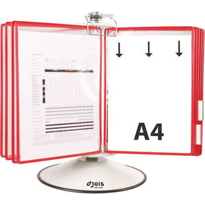 Zichtpaneelsysteem roterend metaal Tarifold A4, 50 zichtpaneel, Lean Management: ja, Kleur: Grijs, Breedte: 600 mm, Hoogte: 46 cm, Diepte: 600 mm, Aantal hoesjes: 50, Showtas kleur: Rood, Showtas materiaal: PVC, Voor formaat: 210 x 297 mm (A4), Gewicht: 5.09 kg