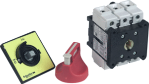 Schneider Electric Vario lastscheider, apparaatbouwvorm inbouwapparaat vaste inb., uitvoering als hoofdschakelaar, vergrendelbaar, nom. continustroom Iu 63A, uitvoering als noodstopinrichting, 3 polen, beschermingsgraad frontzijde (IP) IP65, bedieningselement rood, geschikt voor verdelerinbouw,