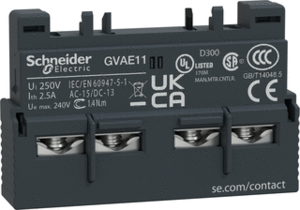 Schneider Electric TeSys GV hulpcontactblok integreerbaar, frontbevestiging, T.b.v. schakelaar/automaatserie(s) GV2/GV3, uitvoering elektrische aansluiting schroefaansluiting, 1 contacten als verbreekcon, 1 contacten als maakcontact, geschikt voor motorbeveiligingsscha,
