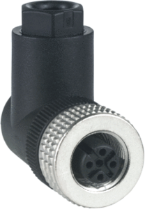 Schneider Electric Preventa XZ ronde (industrie) connector, contactuitvoering pen, diameter connector 12mm, draadmaat (metrisch) 12, 4 data contacten, voor buitendiameter kabel 7mm, uitvoering behuizing schuin (hoek), nom. (meet-)stroom In 3A, nom. (meet)spanning 125V,