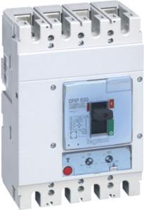 Legrand LEXIC DPX3 vermogensschakelaar, 4 polen, nom. continustroom Iu 630A, positie aansluiting hoofdstroomcirc voorzijde, compleet apparaat incl. beveiliging, uitvoering van het bedieningselemen draaigreep, apparaatbouwvorm inbouwapparaat vaste inb., 2 hulpcontacten als verbree,