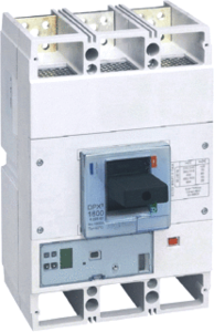 Legrand LEXIC DPX3 vermogensschakelaar, 3 polen, nom. continustroom Iu 1600A, positie aansluiting hoofdstroomcirc voorzijde, compleet apparaat incl. beveiliging, uitvoering van het bedieningselemen draaigreep, apparaatbouwvorm inbouwapparaat vaste inb., 3 hulpcontacten als verbree,