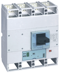 Legrand LEXIC DPX3 vermogensschakelaar, 4 polen, nom. continustroom Iu 1600A, positie aansluiting hoofdstroomcirc voorzijde, compleet apparaat incl. beveiliging, uitvoering van het bedieningselemen draaigreep, apparaatbouwvorm inbouwapparaat vaste inb., 3 hulpcontacten als verbree,