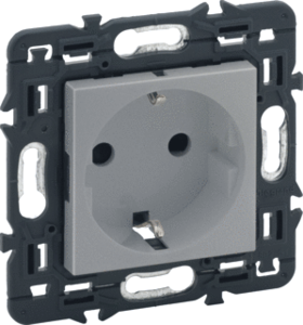 Legrand Valena Next wandcontactdoos (wcd schakelmat.), aluminium, uitvoering contactdoos CEE 7/3 (type, aardcontact overig, 1 actieve contacten (rond), 1 eenheid, 1 fasen, aansluitwijze steekklem, met verhoogde aanraakbeveiliging