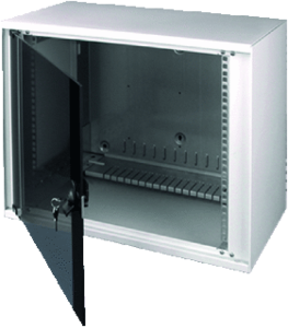 Minkels MWE netwerk-/serverkast met vast raam, staal, grijs, (hxdxb) 1009x625x600mm, met zijwanden, 21 hoogte-eenheden, montageniveau voorzijde, beschermingsgraad (IP) IP21, demontabel, soort ventilatie passief, met aarding, 1 deuren, deur voorzijde glas, max. belastbaarheid 100kg, met dakplaat,