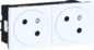 Legrand Mosaic wandcontactdoos (wcd schakelmat.), wit, uitvoering aardingspen, aardcontact rond, 4 actieve contacten (rond), 2 eenheden, 4 modules (bij modulair sys, 1 fasen, aansluitwijze steekklem, met verhoogde aanraakbeveiliging, RAL-nummer 9003