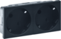 Legrand Mosaic wandcontactdoos (wcd schakelmat.), zwart, uitvoering contactdoos CEE 7/3 (type, aardcontact overig, 2 actieve contacten (rond), 2 eenheden, 4 modules (bij modulair sys, 2 fasen, aansluitwijze steekklem, met verhoogde aanraakbeveiliging, RAL-nummer 9006