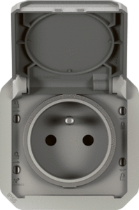 Legrand Plexo wandcontactdoos (wcd schakelmat.), grijs, uitvoering aardingspen, aardcontact rond, 2 actieve contacten (rond), 1 eenheid, 2 modules (bij modulair sys, 1 fasen, opdruk/indicatie beschermingsgraad (IP), aansluitwijze steekklem, met klapdeksel, met verhoogde aanraakbeveiliging,
