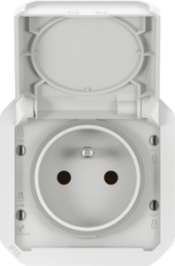 Legrand Plexo wandcontactdoos (wcd schakelmat.), wit, uitvoering aardingspen, aardcontact rond, 2 actieve contacten (rond), 1 eenheid, 2 modules (bij modulair sys, 1 fasen, opdruk/indicatie beschermingsgraad (IP), aansluitwijze steekklem, met klapdeksel, met verhoogde aanraakbeveiliging,