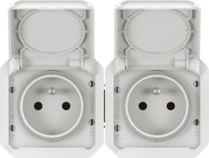 Legrand Plexo wandcontactdoos (wcd schakelmat.), wit, uitvoering aardingspen, aardcontact rond, 4 actieve contacten (rond), 2 eenheden, 4 modules (bij modulair sys, 1 fasen, opdruk/indicatie beschermingsgraad (IP), aansluitwijze steekklem, met klapdeksel, met verhoogde aanraakbeveiliging,