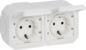 Legrand Plexo wandcontactdoos (wcd schakelmat.), wit, uitvoering contactdoos CEE 7/3 (type, aardcontact overig, 2 eenheden, 1 fasen, opdruk/indicatie beschermingsgraad (IP), aansluitwijze steekklem, met klapdeksel, met verhoogde aanraakbeveiliging, RAL-nummer 9003