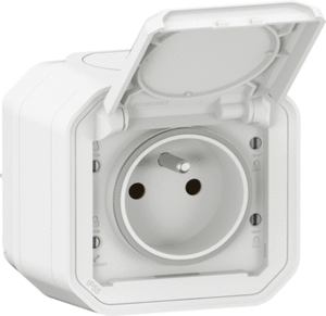 Legrand Plexo wandcontactdoos (wcd schakelmat.), wit, uitvoering aardingspen, aardcontact rond, 2 actieve contacten (rond), 1 eenheid, 2 modules (bij modulair sys, 1 fasen, opdruk/indicatie beschermingsgraad (IP), aansluitwijze steekklem, met klapdeksel, met verhoogde aanraakbeveiliging,